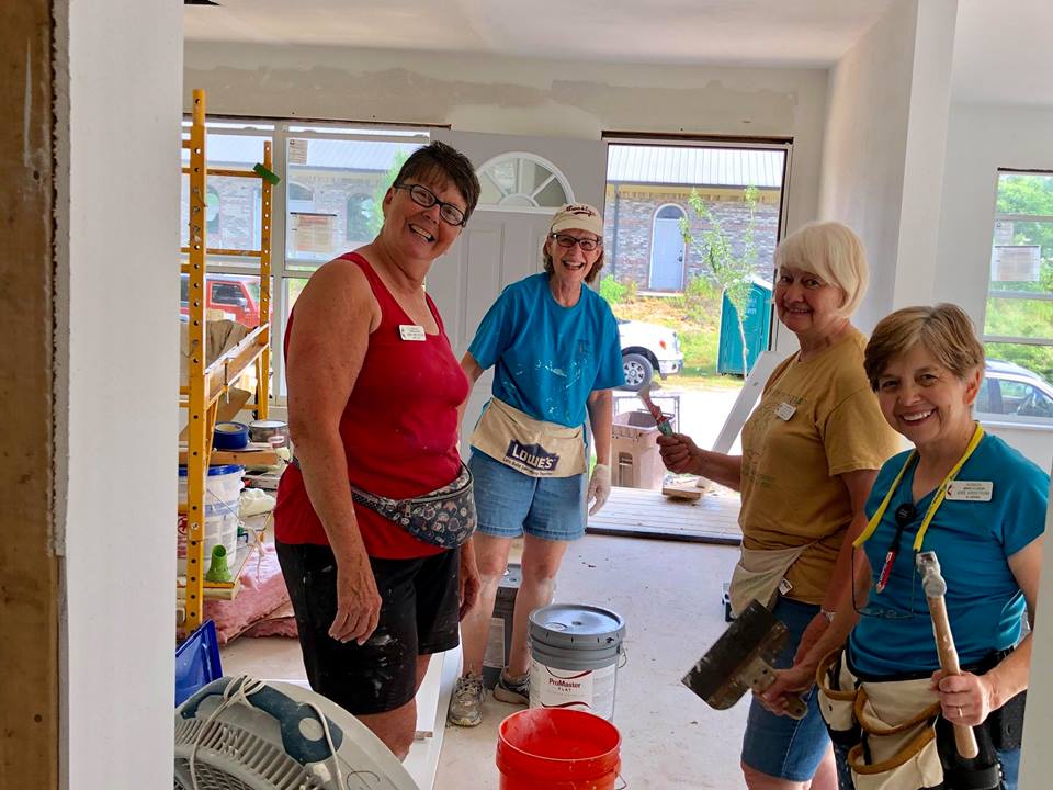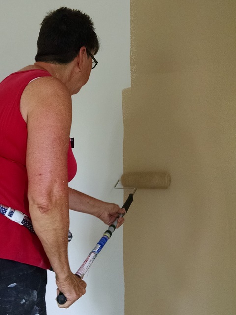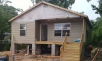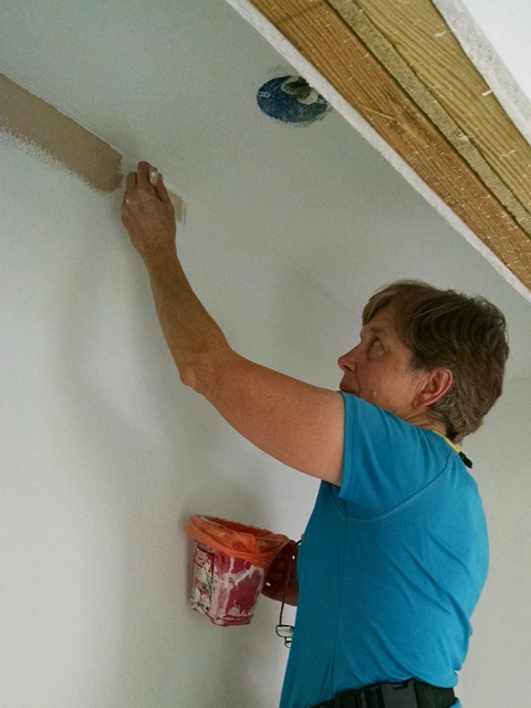 It was a busy day at both houses. James came by his house late this afternoon. He likes the paint we are using and we learned a little of his story. He was at his house when the tornado struck. His house was deemed not repairable and was bulldozed. He is very excited seeing the progress on his house. We don’t really know Mary’s story yet. More tomorrow.