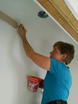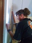 At Mary’s we repaired an exterior door frame, framed a window, painted trim, removed a section of of the porch ceiling and installed trim around two interior doors and some base board. If the flooring is there in the morning, we will be installing that tomorrow.