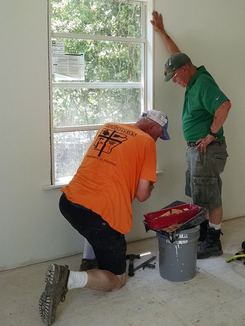 We then headed to the job sites. Anne worked at James’s house and Max worked at Mary’s. Both were about 30 minutes from Oak Grove UMC and only about 5 minutes apart. We met at the R3SM office for lunch but took our breaks separately. John’s house is a new build that was built by the Mennonite team. We are doing the inside work and are currently painting, and installing window trim. Today we completed priming all rooms. We have final ceiling and wall paint in one bedroom. All the ceilings have final paint except kitchen and living room. One of the hall closets was also completed. We should finish most of the painting tomorrow.