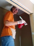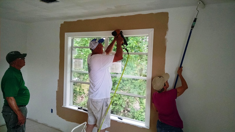 We were then all off to the job sites with us all returning to the same jobs as yesterday. Traffic didn’t seem quite a bad as yesterday. Back at James’ we returned to painting. Today the bedroom, laundry room and bath room were completed. The final coat of paint was put on the kitchen and living room ceiling. All the window and door trim was painted. Later in the day Bryant and Norman worked on installing the window trim. Hopefully they will be able to finish that tomorrow. The rest of us painted the second bedroom, laundry room, bathroom, started the kitchen. The ceiling in the kitchen and living room was completed. And the furnace room was also painted. We didn’t get the painting completed today but hopefully tomorrow.
