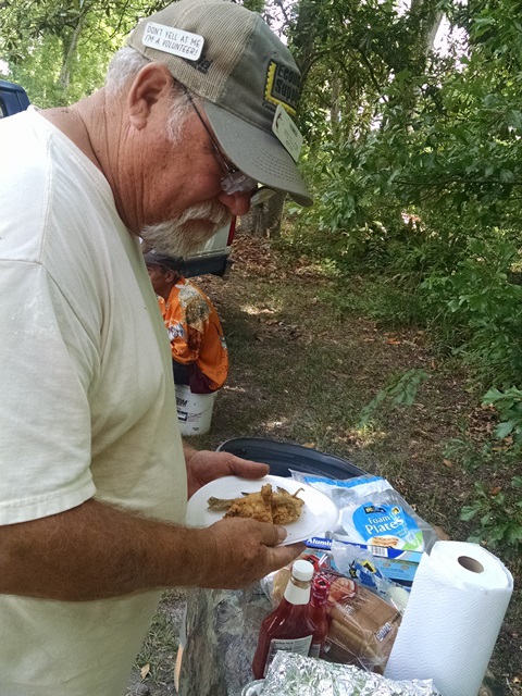 This afternoon, James and his son, James, Jr., cooked the team fried fish. James Jr. went fishing yesterday and caught bream, bass and trout. They fried it up for us as a way of saying thanks. We also got to meet James daughter and two of his many grandchildren. It was a special time with the family and certainly we appreciated it.