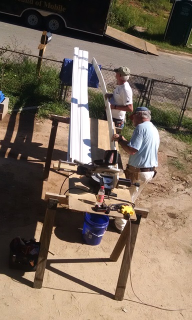 After devotion we headed back to James’ house. Our main focus today was to complete the laminate in the laundry room and get as much trim installed and caulked as possible. Every one went to work and it was amazing what was accomplished. It was nice to have everyone back in the same place for our last day. It was a little crowded with the ten of us in James’ little house but it was good. We were treated to lunch at The Depot, a restaurant next door to R3SM. An anonymous donor gave us all $10.00 give certificates. The food was really good and was a real treat for the team. After lunch we did our first Bible presentation of the day. We had all signed the Korean Bible for our Korean home owner. It was so great to get to meet her. She was very touched by the Bible. She seemed to be very touched and excited to have a Bible in her native language. Chris heard her on the phone calling friends and family and telling them about the Bible. We wonder if she lost her Bible in the storm. Neat! On the way back to work we stopped by Mary’s to give her a Bible. Mary was very glad to see us, very appreciative of the visit. Both ladies shed a few tears. We then all gathered back at James’s house and presented him with his Bible. It was a very special time. He also seemed so appreciative of all that has been done for him.