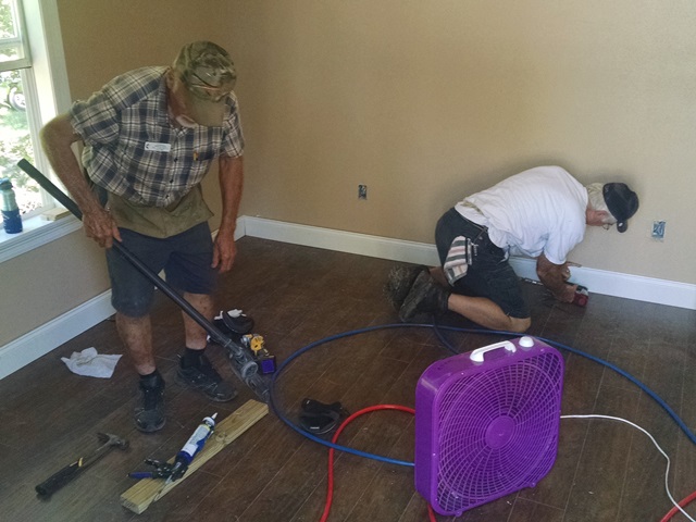 After the great time with James we all went back to work and completed all the laminate, and most all of the base and trim that could be installed for now. There will be more after the tile is installed. It was time to clean the house and get all our tools back in our vehicles. The house is looking really good. It is looking like a home now. The tile, cabinets and final plumbing, electrical and HVAC and the house should be about complete. Darrel thinks they can have all that done in the next month. We truly hope so.
