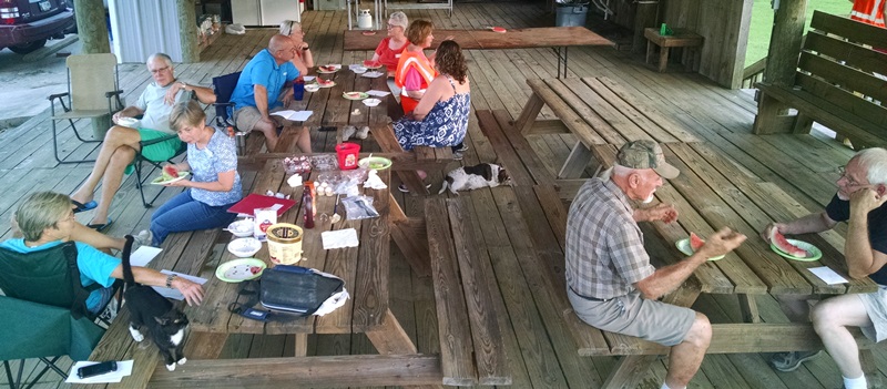 Tonight was met at the pavilion and had a time of food and sharing. We had some very good watermelon, ice cream and cupcakes. It was a fun time and a time to say goodbye. This has been a great team. They really came together to get it done. All but Nula will be pulling out in the morning. We hope to see you all down the road soon.