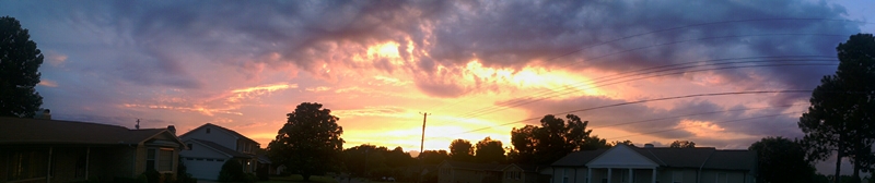 A cloudy day today, and cooler. We had a couple of tiny showers but no significant rain here in Tuscaloosa. We had a gorgeous sunset which may have been enhanced by the large storm clouds up in Cullman County (where Anne worked). There was another tornado in northern Cullman County shortly before sunset, with at least 3 injuries, one being an infant, confirmed so far. Those 3 were from a mobile home that was totally destroyed. One of our good EMA friends lives across the road from the trailer but she and her husband are fine. She said that the wind became strong and out of nowhere debris started hitting her house and she and her husband knew immediately what was happening and rushed to the basement. When she came out, her neighbor’s house was gone. Search and rescue are going door to door and trying to clear roads. We are praying that no more injuries are discovered. This was a strange storm in that it was a lone storm with almost no lightning and a short track.
