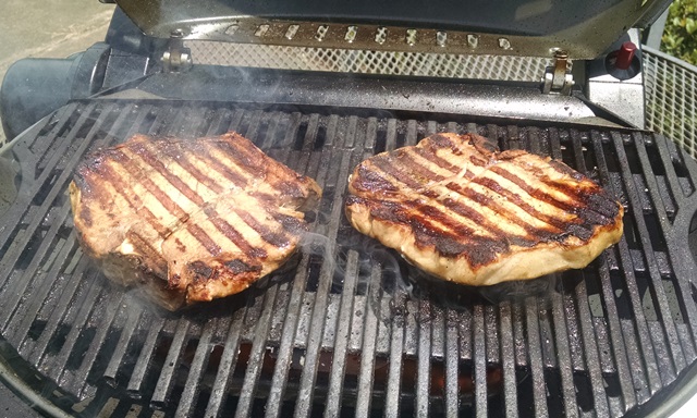 We celebrated the day by cooking and eating. After our 3 mile walk this morning we enjoyed a repeat of our cinnamon raisin brioche french toast, then for a late lunch we grilled some barbecue pork chops. Anne also worked on taxes a while. Nice quiet day together.