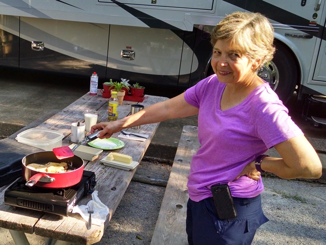 As the temps rose we retreated to the comfort of Fred except for grilling a late lunch. We visited with our next door neighbor who left late today and did another hike just before dark. That was our day. A wonderful return to a day in the campground. Good food. Good hiking.