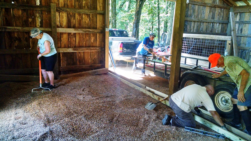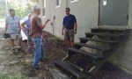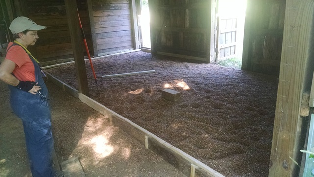 Other projects for our team include building a new set of steps for the infirmary. Shannon, Mariel and Carol are working on those and made good progress on that project today. The rest of the team, Dave, Dale, Peggy and John are working at the barn. They will be building a maintenance/tool room in one part of the barn. They worked on installing forms and placing the pea gravel today and tomorrow will be pouring the concrete. Concrete is to be delivered at 1:00 tomorrow. Lots accomplished today but much more to do. It’s going to be a good three weeks.