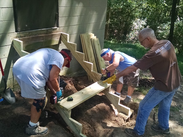 Morning devotion was at 8:00 by Dave. He had us thinking/talking about our life journey and how God brought us all to this place today for His purpose. After devotion and our prayer time, we all were assigned our jobs for the day. We both worked with Kitty on the one of the cabins. We are going to be installing laminate flooring and making other needed repairs at the cabin. We first removed the base trim and assess and repaired the damaged areas (water leaks) of the flooring. We got all that done and will be ready to start installing the laminate in the morning. As we were cleaning up at the end of the day Kitty went to the cabin next door to get a broom and found a lot water in the floor. It seems the toilet was over flowing. Max got the water turned off and we spent the next hour sweeping out the water and then vacuuming up the water. An unusual end of our day.