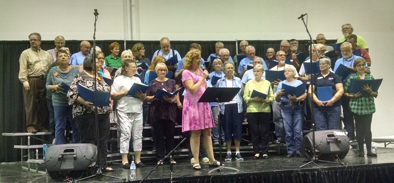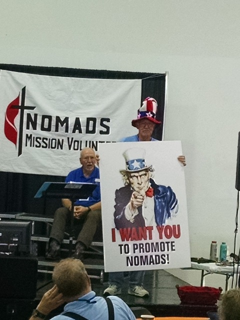 This afternoon Anne was in the mood for a break from the meetings and so she attended a line dancing class taught by some fellow NOMADS. That was a first, and she found it to be a lot of fun and good exercise. No problem getting steps today even though we didn’t get to walk this morning due to the rain. Max attended sessions hanging doors and windows and best practices for NOMADS. There was another leader training class this afternoon and tonight we had our closing meal together, barbeque from Corky’s. Very good! And the banana pudding and brownies were pretty awesome, too. Our choir gave a final worship concert after dinner. They did a great job. We have a lot of talent in this group. Then it was time for our last hugs and “see you down the road’s”. Some of our friends we will work with in a few weeks in Lumberton, NC and some we probably will not see until our meeting next year in Illinois. Even though we may be many miles apart, we will hold them in our hearts. Lots more to share but we must be ready to travel early in the morning so we will try to catch up a little later. Safe travels everyone.