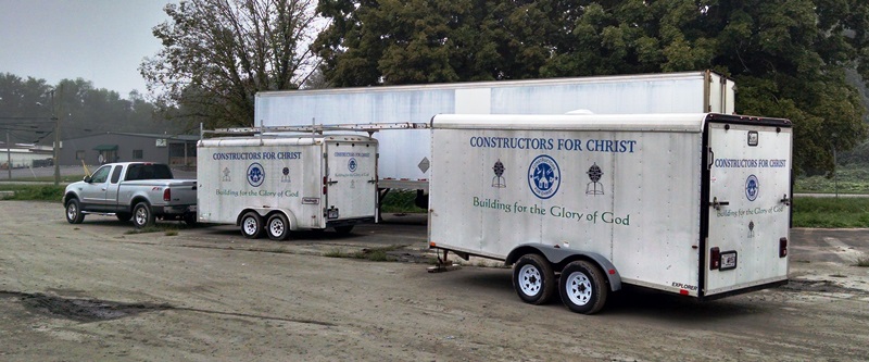 Unfortunately, we will be short many of our usual workers due to the delay. Our team this week will be less than ½ of our norm with about 20 expected versus about 45-50 on a usual week one. Oh well, God will use and bless what we are able to get done. Today Max and Randy first repaired one of our tool trailers electrical connections that were damaged in their travel to KY. Later they worked on installing the base channels so we will be ready to begin some walls Monday Morning.