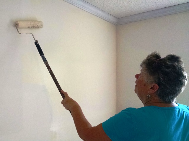The remainder of the day was spent with everyone working on various items. There was baseboard installed in a bedroom and window trim as well. Crown was painted. Caulking was done. The master bath got it’s first coat of paint. The master closet ceiling got a coat of ceiling paint and the walls are ready for a coat of paint. Doors were taken down and the ends painted as well. It was a busy day. Things are starting to look good but there is still much to do.