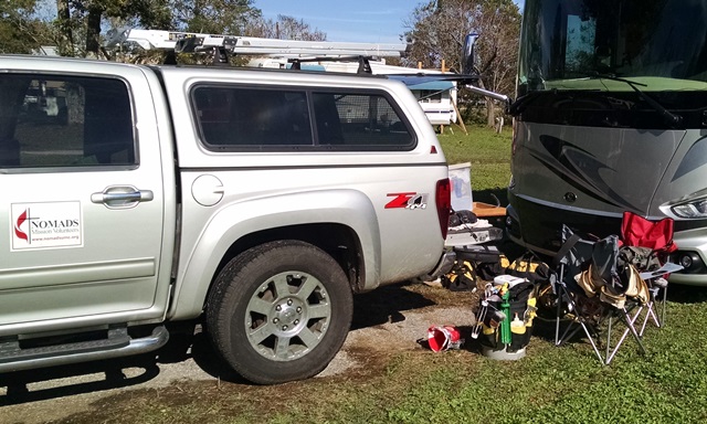 No alarm clock this morning. We started the day slowly. Cindy and Bruce left last night after dinner for a weekend get-a way. Carol and Dave left this morning to make a long drive to Pennsylvania. They will be spending the week visiting family and friends. Glad when we heard from them a little while ago, that they have arrived safely. Carol said traffic was pretty bad and they saw lots of snow. Mike and Susan left for Michigan a little later in the day. Praying for their safety as they make their way back to the snowy north. They had to winterize their rig before they left this morning.