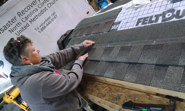 Lee shared with us for our devotion today. She used a reading from the Upper Room. Isaiah 40:27-32. She reminded us that God gives strength to the weary. Several of us felt that was an appropriate reminder for a NOMADS Friday (known to some as “Thursday”). Some of us are weary by this time of the week. The reading Lee shared was a story of a burned out caregiver. God is always there to see us through. Lee reminded us that the people we are helping usually have multiple problems, such as health problems and flooding, or financial problems and flooding or something else and flooding. We must share with them who gives the strength to make it through.