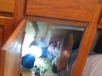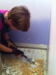Even with all the running from place to place to get material there was a lot accomplished today. Anne and Diane completed the prep for the vinyl flooring in the first bedroom at Gilberto’s. That was a big job because after the old tile was removed we had to scrape the remaining sticky glue off the slab. The new flooring has to float not stick to the slab. John, installed a new sink faucet and new cabinet floor to replace the cabinet floor damaged by the leaking faucet. Max installed a new sweep on the front door and started working on the new back door. John got all the base removed from the hallway, Diane began removing the vinyl flooring from the kitchen. Anne and Stel began installing the new vinyl in the first bedroom.