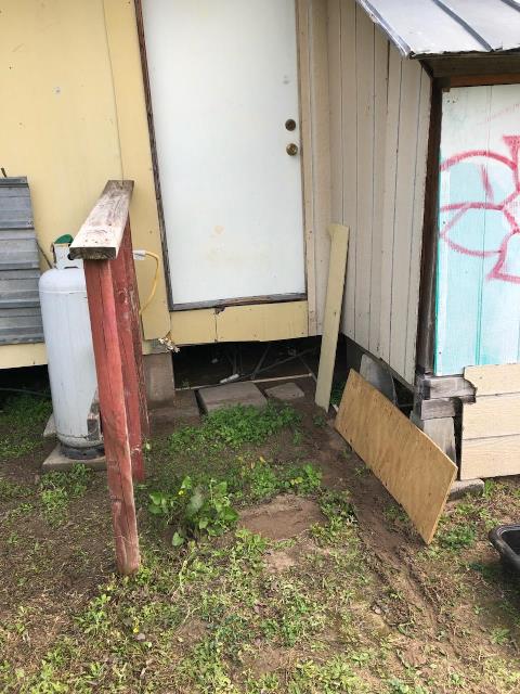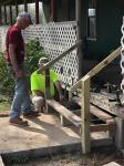 At Josefina’s there was demo and construction and by late afternoon all the materials Rita purchased this morning had been delivered. Rita did the demo on the back stoop. The guys built new front steps and worked on replacing broken windows. We have lots to do but we make a good start today.