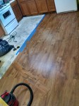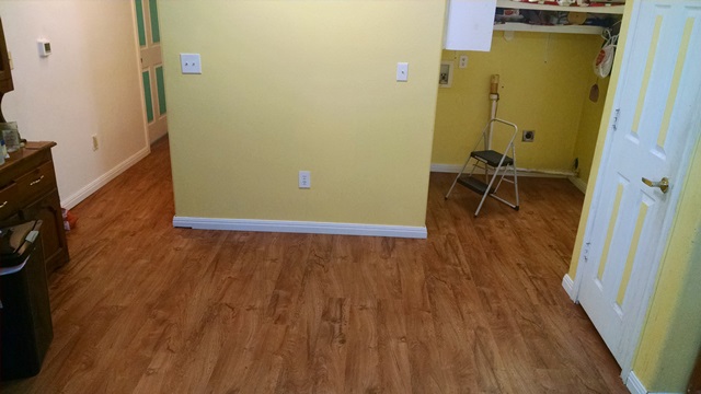 We then all went back to work pretty much where we left off last week. Rita, Max and Anne headed back out to Gilberto’s. We started the day with the hopes that we would finish the flooring tomorrow. Unbelievably, we have the floor finished. In spite of having to move the refrigerator, stove, washer, dryer, and freezer and work around all that stuff, somehow, we got all the flooring completed, and all the trim back down that we have. We will have to buy a couple of pieces tomorrow. Stel, Jodi and Dave came out late this afternoon and helped finish up and move all the appliances back in place. We really appreciated their help.