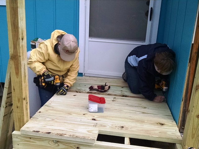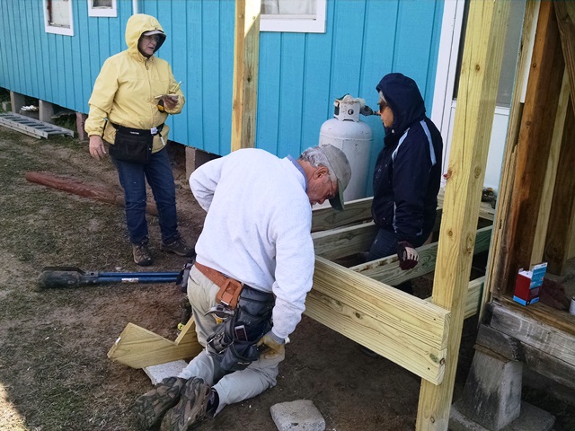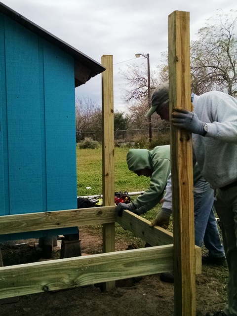 Stel asked us all to be flexible today and switched things up a bit. Rita, Dave, Max and Anne went to Josefina’s to install more of the trim on the exterior of the house and build the back porch and steps. The trim is completed and we built the deck area and steps but have not quite completed the hand rails nor installed the pavers at the bottom of the steps.