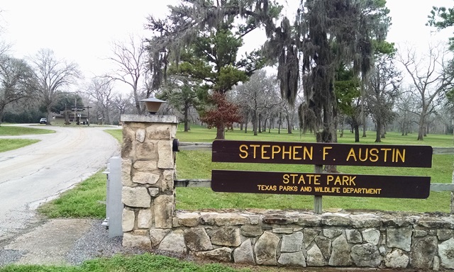 Today we moved from Kerrville-Schreiner Park to Stephen F. Austin State Park in San Felipe, Texas. It is on the west side of Houston about 50 minutes out of Houston. San Felipe is really just a tiny town of 747 people and all that is really here are the historical sites of Stephen Austin, the park and golf course. Dave said something about us being out in the woods and seems he is right. Nearby towns that are larger but still outside of Houston are Sealy, Fulshear, (where Dave and Linda live) and Katy. We are still about an hour from where Anne’s cousin Ross and Barb live. We hope to see them again while we are here too. We had an uneventful travel day and we are settled in. We will see what tomorrow brings.