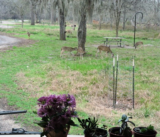 Yesterday we primarily stayed in the park exploring. When we first checked into the park here one of the rangers suggested that we should look for the local wildlife – deer and woodpeckers. We hiked and biked several trails and saw both. None of the trails here are very long but most of them have a way of connecting so you can get several miles that way. Unfortunately, a number of the trails are still closed from the flooding from Hurricane Harvey. The nature center here had between three and four feet of water in it and is still closed. They have the buildings cleaned out and have started the repairs but they still have a way to go on buildings and trails. We did leave the park long enough to find the Walmart in Sealy. It’s a small store but big enough.