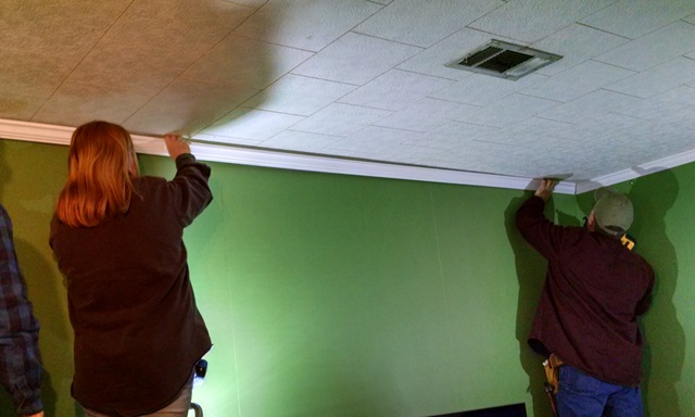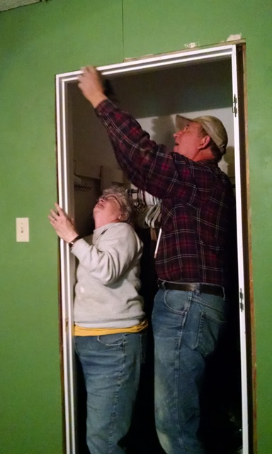 As is our custom, Max and Anne led devotion time today. We then decided on job assignments. We picked up tools from the tool room and headed out to three job sites. Anne, Gary, Nancy, Anne and Bob headed to Paula’s house in St. Amant where we were working on installing crown molding, doors, and making a repair in the kitchen ceiling. There was also lots of painters tape to remove. It was a challenge because the tape had been on for a week. We still have several rooms to go. Bob and his Anne hung one of the closet doors and will install the trim tomorrow. Nancy and Gary worked on the crown molding. It makes the room look so much better. Anne removed some of the kitchen ceiling tiles and has the area ready for drywall.