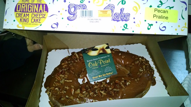 This evening we were surprised by the Teresa and Linda, who work for the conference disaster team, with a pecan praline king cake with cream cheese filling. We talked about it this morning during our meeting when Teresa came by to greet us. Most of the team had never had king cake. Teresa say they don’t eat doughnuts when it’s king cake season (Mardis Gras) because the cakes are better then doughnuts. Now that was hard for us to believe. So we all had king cake tonight. It was very, very good. Now we understand. Thanks to Linda and Teresa.