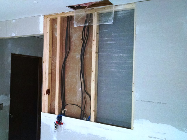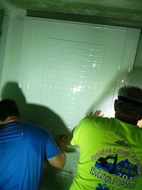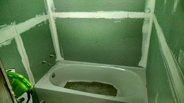 Anne, Gary, Nancy, Randy, Mary, Stel and Jodi went to Norwich Drive to work on drywall and finish installation of the tub surround. Lots of progress was made on the drywall and the tub surround was completed.
