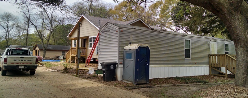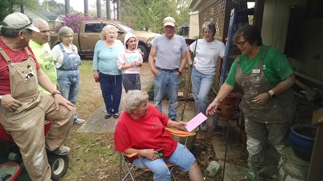 Then it was back to work. Butch, Cheri, Harry, Janet, Mark and Lisa went back to Ms. Pam’s house on Baker Drive to continue work on the drywall and electrical. They got a lot more drywall done and tracked down and repaired the rest of the electrical problems. More importantly, Butch got the water heater installed and the water turned back on to the house. That is a big milestone for Ms. Pam. She has been without hot water in her travel trailer for weeks.