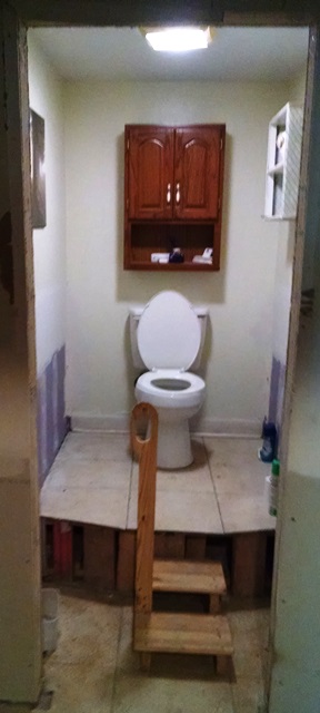 This afternoon Stel and Max rode with Darryl to another house that needs work. After they got there it became evident that NOMADS will not be working on this house anytime soon. It needs the roof repaired before any inside work can be started. However, while there that did see an interesting bathroom fixture and a snake they had not seen before.