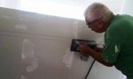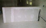 The rest of the team went back to Norwich. One of the first things we did was move the huge roll-in shower down the hall and into the bedroom. Next was reinstalling the portion of the wall we had to take down yesterday in preparation of moving the shower into the bedroom. The installers have to come do some work before it gets put in the master bath. Then we resumed sanding, and mudding the ceilings and walls. Norwich is starting to come together. There is still a lot to do but it’s getting there.