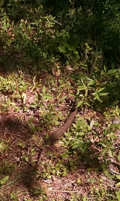 Sorry for the poor picture. By the time we (we??) got turned around the water moccasin was off the trail.