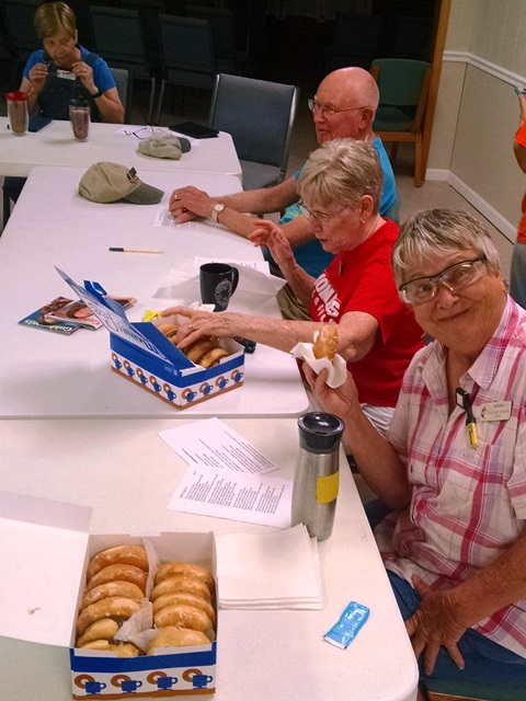We also were treated to doughnuts this morning by Joe and Jayne. Very good. Joe and Jayne had to leave after devotion because her brother flew in from Mexico for admission to the hospital in Houston with very serious heart problems. We will miss Joe and Jayne and will continue to lift them and Jayne’s brother up in prayer.