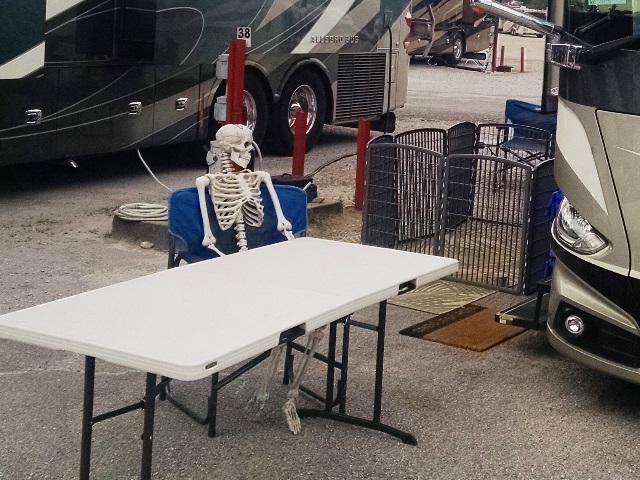 We finished our service visit to the Tiffin Service Center yesterday afternoon a little too late to drive to Tuscaloosa. After a visit to check-out (where we were surprised to find out that, once again, we owed nothing for the work) we got Fred mostly ready to roll and then walked around the campground talking to the people we had met during this visit. It’s always fun to meet new people and talk about NOMADS, RVing and Alabama.