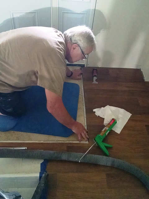 Today we placed the trim in the channels for all the transition strips. The transition from the ceramic tile to the wood laminate looks really good. Joe did a great job. Max, Anne and Charley worked on installing baseboard and caulking. Good progress was made. We have completed much of the needed work on the house. If our team had about one more week we could probably complete both houses. Unfortunately, there are no volunteers scheduled here for several weeks. Makes us sad to leave. We wish we could have done more.