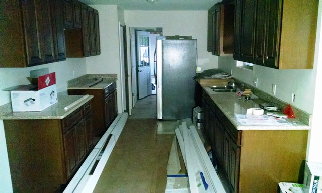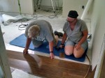 Out at Groom Road good progress was also made. It was raining so hard and water was rising fast so we did not get to go to the Bible presentation at Groom but from the pictures, the kitchen looks very nice. Nice counter tops, Bob and Gary! Sharon and Virginia also completed the portion of the flooring they were hoping to do.