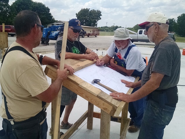 The guys were on the job site with Ray directing them at 8:00. Since Saturday is an “extra” day to get things setup and started, Ray let everyone sleep in today. We will start at 6:00 am starting Monday. The people working on the new church building were laying out the walls and installing the base plates. Some also worked on building the T posts and corner posts. Anne and Debra were back in the kitchen at 8:00. They were assigned the “store” so they spent most of their day unpacking all the T-shirts, hats, caps, sweat shirts, etc. and setting up the displays of all the Constructors for Christ logoed items. We all enjoyed our day renewing friendships with all the people we will be working with for the next week. We had between 30-40 people working on this “extra” day. It was a very productive day and we are looking forward to the rest of our team members arrival tomorrow.