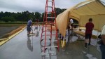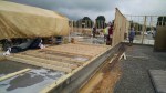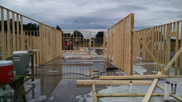 We had rain overnight with some thunderstorms. Today was cloudy, with intermittent rain. The crew on the slab had to stop twice today due to the rain and they worked through a few more showers. They were a little like wet rats for part of the day.