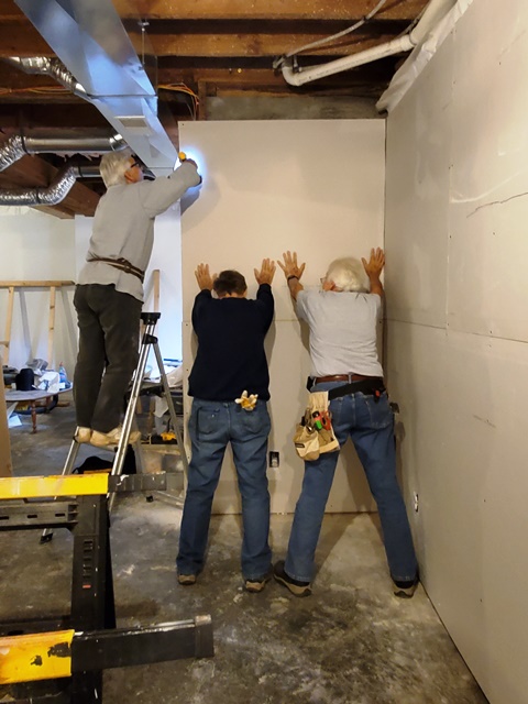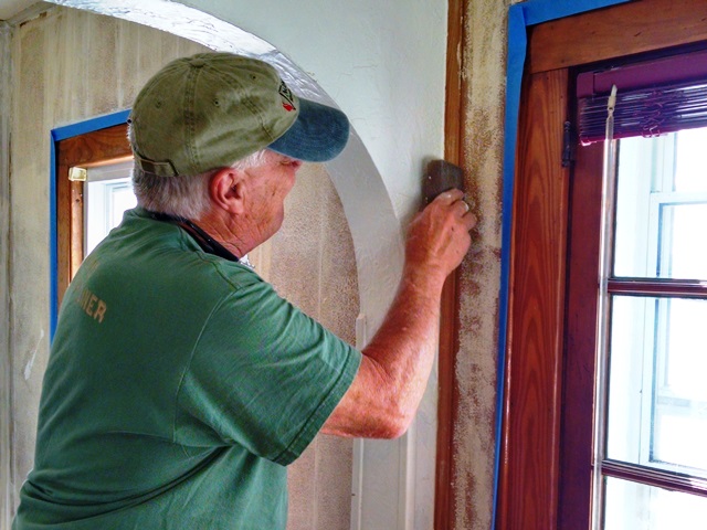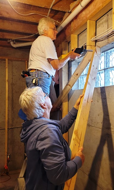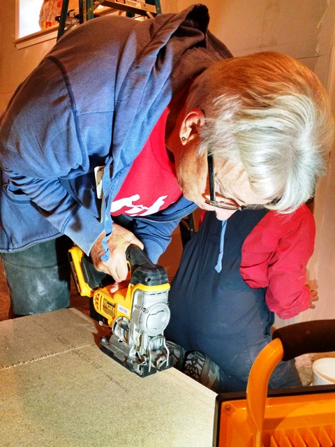 Again today Nancy, Gary, Rick and Sue headed back to Rhonda’s house. The crew there worked on installing base boards, painting cabinet doors, and several other things to make live easier for Deniese and Rhonda. At Lianna’s Stel, Jodi, Betty, Anne and Max worked to get that house close to completion. We cutout the counter top for the kitchen sink, and installed the sink. We will pick up parts to hook up the plumbing this weekend. We also completed the glass block window, got first coat on all the drywall and second coat on some. Next week we plan to finish up both these homes and get as much drywall up at Nate’s as possible. We also will be doing some work at the church. Lots left to do.