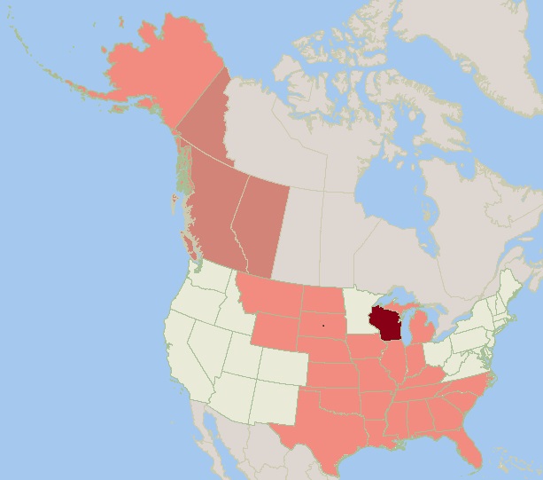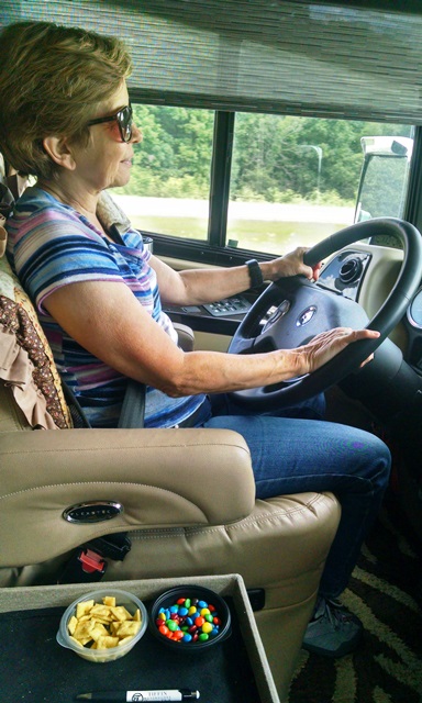 Friday morning we were back on the road about 7:00 to head on north, through Kentucky, Indiana, and Illinois and spent the night at the Wisconsin welcome center about a mile into Wisconsin. Overnighting is legal in Wisconsin rest areas. It was our first night in Wisconsin in our RV so we now get to add another state to our list. It was a nice large rest area with lots of room to walk. We walked last night and again this morning. We stopped several times, once for fuel and the others at rest areas changing drivers and walking. We took a longer break for lunch and stopped for the day at about 5:30.