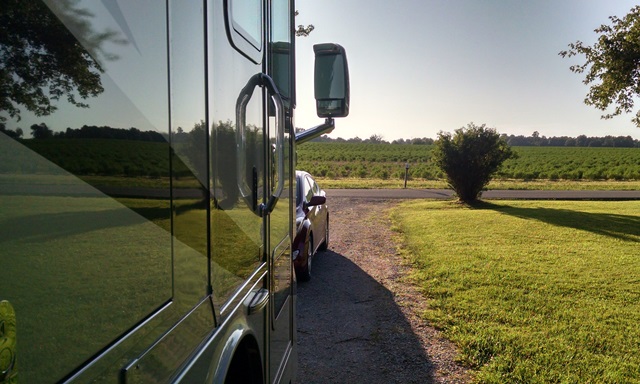 Currently we are watching the clouds roll in. According to the radar we have a nasty storm headed our way. We can’t see the storms moving like this at home due to our hilly terrain. Wow, it’s cool to watch. Yes, we already have the weather radio programmed to our area (it has not gone off) and our 911 address posted on the refrigerator. The temperature has dropped 10 degrees in the past 15 minutes and it is raining like crazy. We will post again tomorrow since we are back on the road. Hope everyone is having a great weekend.