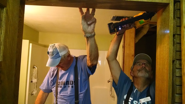 Anne, Norm, Tom and Jenny went to Rhonda’s where they got the back bedroom baseboard completed and door hung and trimmed. The bathroom ceiling and walls are painted, the door hung, the baseboards installed and interior door trim installed. The front bedroom baseboards are almost complete and the door installation is underway. It’s beginning to look like a home. We will be pushed to get all the little remaining things done in those three rooms tomorrow but hopefully we will make it. We are all tired tonight but tomorrow is NOMADS Friday.