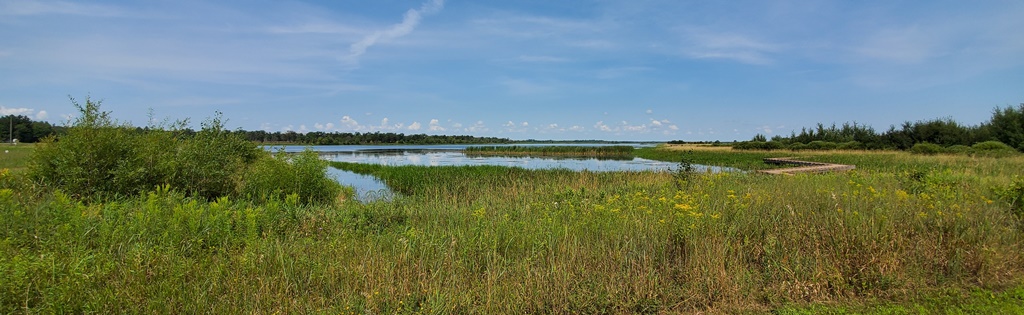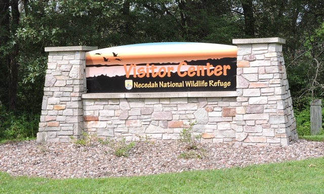 Necedah NWR signIn looking at what else was in the area, we found the Necedah (neh-CEE-duh) National Wildlife Refuge which is about 17 miles north of New Lisbon. The refuge welcome center was very well done. Beautiful building and helpful staff. There are numerous trails and wild life viewing areas. We did the one mile loop trail at the visitors center and then drove to Sprague and hiked in that area of the refuge. Beautiful day to be out in nature listening the frogs, and birds. We saw 3 gorgeous swans peacefully swimming on Sprague Pool along with sandhill cranes, Canada geese, great blue herons and other birds.