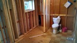 Max and Nancy returned to JJ’s house and finished the floor and trim there a little after 10:00 am, then Nancy went to Rhonda’s and Max went to Nate’s where he helped Stel, Jodi and Harry finish getting the bathroom ready for the plumber and electrician. They got both new windows installed and all the walls framed. We got word that the plumber should be there Monday.