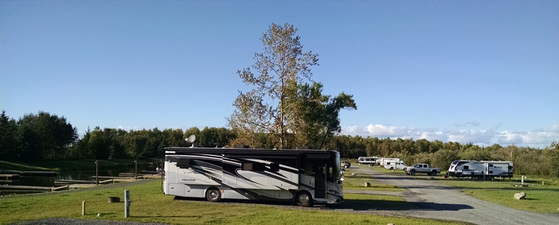 We headed northwest from New Lisbon, on I-94. After about 90 miles we changed to US 53 for another 325 miles and arrived at Rainy Lake RV park just east of International Falls, Minnesota about 4:15. We came here to visit Voyageurs National Park. We have never visited this park or Minnesota so we should be able to add the state for FRED, get our national park passport stamped and find a geocache or two while we are here. We have a few days until we need to be in Illinois for the NOMADS annual meeting so it seems a good time to take a few days to play. It was an uneventful drive although a little harder due to the gusty winds. We stopped about every two hours to walk and change drivers. We really enjoyed the scenery going north in Wisconsin. Beautiful rolling hills of farm and forest land. After only about an hour we could see more color in the leaves. The further north we drove, we noted the steeper the pitch on the roofs of the barns and homes. That means there is too much snow for us to live here. We also got to see Lake Superior today. Another first for us. We crossed into Minnesota at Duluth, but sadly, no time to stop and shop at Duluth Trading today. As we continued to drive north, we noted a big change in the species of trees we were seeing, and of course more color change in the leaves. The leaves are by no means at peak but there are some bright reds and yellows to be enjoyed. It was a good day. Tomorrow we will head to the park.