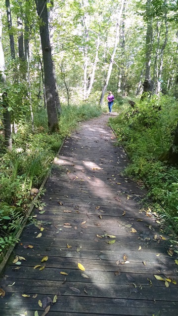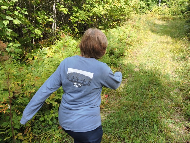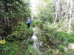Today was a bogwalk developed by a local ski club. When the bogwalk ends the cross country ski trails begin. Hikers are not allowed on the trails in the winter but in the summer/early fall, it’s okay. However, there are lots of mosquitoes and biting flies. It was a beautiful hike but you had to really keep moving to keep from being carried off. Only wild life we saw were some grouse that were too shy to have their picture taken.