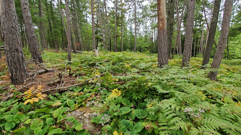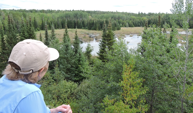 The lady in the center was very nice and gave us a trail map for the Ash River Visitor Center. She also mentioned the Ash-Kab Trail which is is 26 miles long and connects Kab and Ash River. No thanks. The Ash River Visitors Center is in a great old log cabin. The rangers were very friendly and helpful. From there we decided to hike the Blind Ash Bay Trail which is about 3 miles round trip. There were great views of the Kabetogama Lake from up on the ridges and on the water front. The trail was out through the woods, quiet, and beautiful. We only saw 5 people the entire hike. It was strange that the north side of the ridge and the south side had such different plant life. As we were leaving the Park we stopped to hike out the Beaver Pond Overlook Trail which was a little short hike out the see a beaver pond. Since it was getting late we hoped to see some wildlife activity but it was not to be. All was quiet. We didn’t see much wild life today. We saw some interesting birds and thought we heard an eagle but not positive because we never saw it. It was such a peaceful relaxing day. Total we hiked about ten miles today. Not what we had planned but another really nice day.