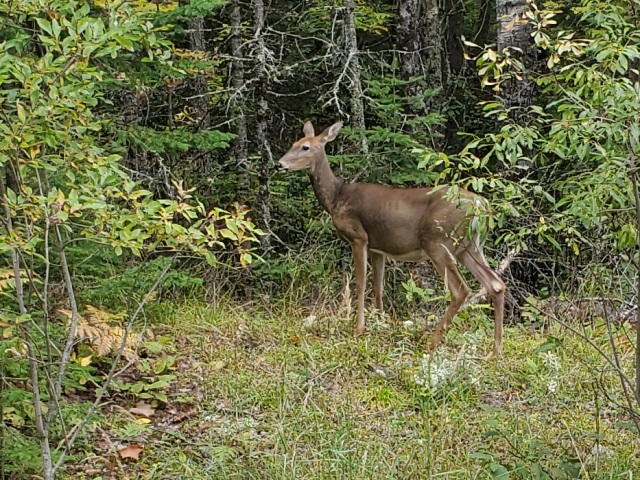 It was a cool 45 degrees this morning with a high of 62 today. It was mostly cloudy with a cool breeze as well. We took advantage of the great hiking weather and did a 5 mile hike on the Rainy Lake Recreation Trail. It’s really more of a walk in the woods on a paved trail rather than a hike over rough terrain like yesterday’s hike. It was a beautiful walk through trees with changing leaves. There are lots of great yellow color but the reds are still really spotty. We saw only one other person while we were out walking today. Quiet, peaceful, nature. Really nice. We also visited the visitor’s center again and were again greeted by some really nice rangers. Everyone here has been so nice.