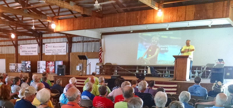 It was another beautiful day in Illinois out here among the corn and soy bean fields. We start every day with a Bible study, a morning social time, some singing and a devotion. Today we also had our friend from Midwest Mission Distribution Center come talk to the membership about their mission work. Chantel the Executive director did a great job sharing MMDC’s story and mission.
