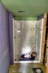 Tom mudding and taping the bathroom walls
