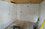 Installing the last piece of drywall in the cabin